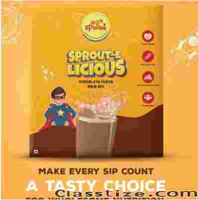 Looking for a healthy 200gm chocolate flavor milk mix in Bangalore? Wesprout’s Sprout-e-Licious is a nutrient-rich blend of sprouted multigrains and dates, crafted for energetic kids. With no added sugar or preservatives, it’s the perfect guilt-free chocolate treat. Shop the best sprouted milk mix in Bangalore today for a delicious, traditional boost to your child's immunity and growth!
