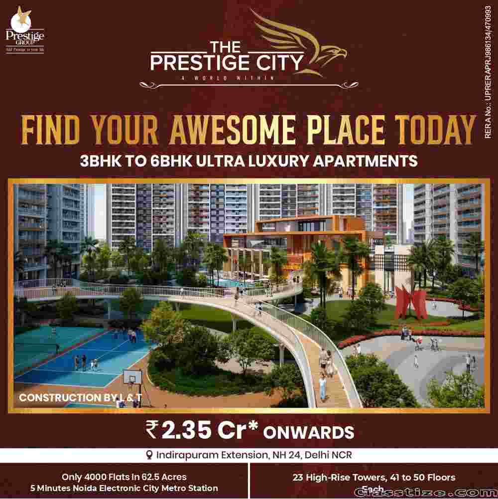 Pick your happiness in the gated community of The Prestige City Indirapuram Extension, NH24, Delhi NCR, for rupees 2.35 Cr* only! To live free from population, huddles, and unwanted disturbance, you should come to this part of life full of entertainment, joy, chirping of birds, and flora & fauna. The Prestige City NH 24 Ghaziabad, is on the superb bank of the Delhi-Meerut Expressway NE03 would have enriched your social and commercial life as well. Visit your dream palace today to have a home like your own empire. A 3 BHK apartment in Indirapuram is commendable for today’s modern resident. Book 3/4/5/6 BHK apartments, penthouses, and Duplexes now! read for more information Visit to https://propshop.org.in/the-prestige-city