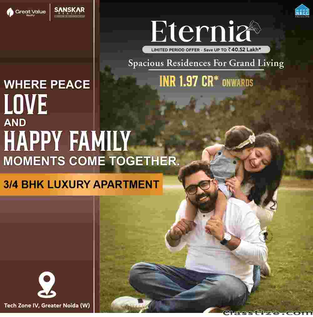 Living in luxury is now your destiny at Eternia Residences, a premium residential project in Techzone 4, Greater Noida West. Eternia offers 3/4BHK apartments of sizes ranging from 1932 to 2625 Sq Ft. You might hear ‘3 BHK apartments in Techzone 4 Greater Noida for sale’ and might be knowing the value of a home that suits your everyday life. A 3 BHK apartment in Greater Noida West would be your best ultra-modern dream home in the dream city of Noida Extension. Book it now and own it for just 1.97 Cr*! read for more information Visit to https://propshop.org.in/eternia-residences