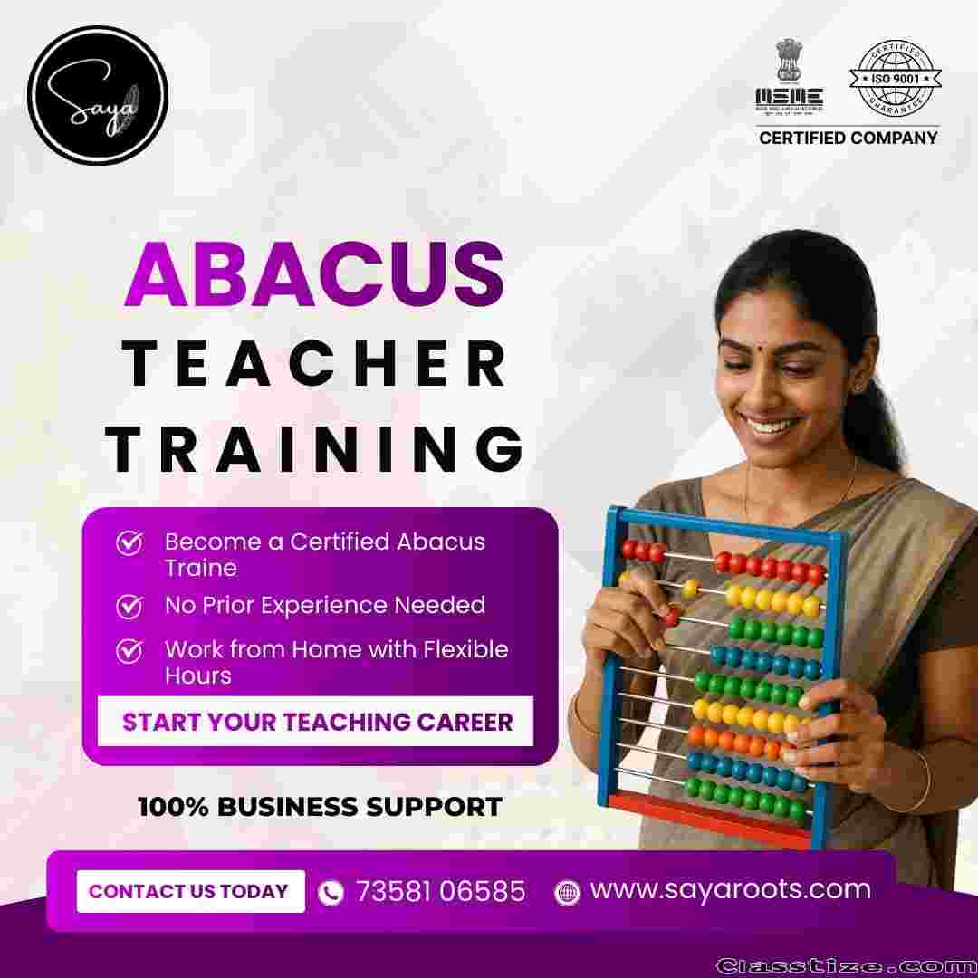 Looking for a complete abacus solution for teaching or learning? Saya Roots offers certified Abacus Teacher Training along with structured Abacus Learning Programs for students (Grade 1 and above). The program improves calculation speed, concentration, memory, and problem-solving skills while providing flexible online learning options.