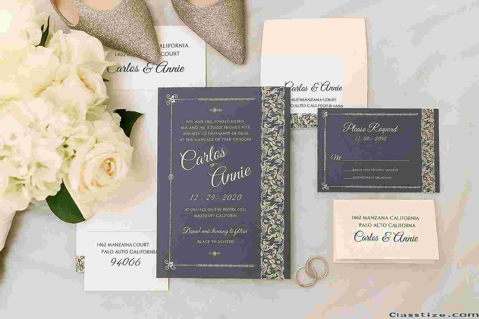 Discover elegant and affordable wedding invitation suites featuring RSVP cards and envelopes. Customize unique, budget-friendly invites perfect for weddings and receptions. These stylish designs offer quality and savings, making your special celebration unforgettable without breaking the bank. Create stunning invitations that reflect your personal style today.