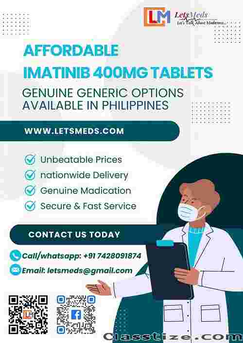 LetsMeds now delivers Imatinib Mesylate 400 mg straight to your doorstep—genuine certified Indian generics at a fraction of Branded imatinib 400 mg price philippines.