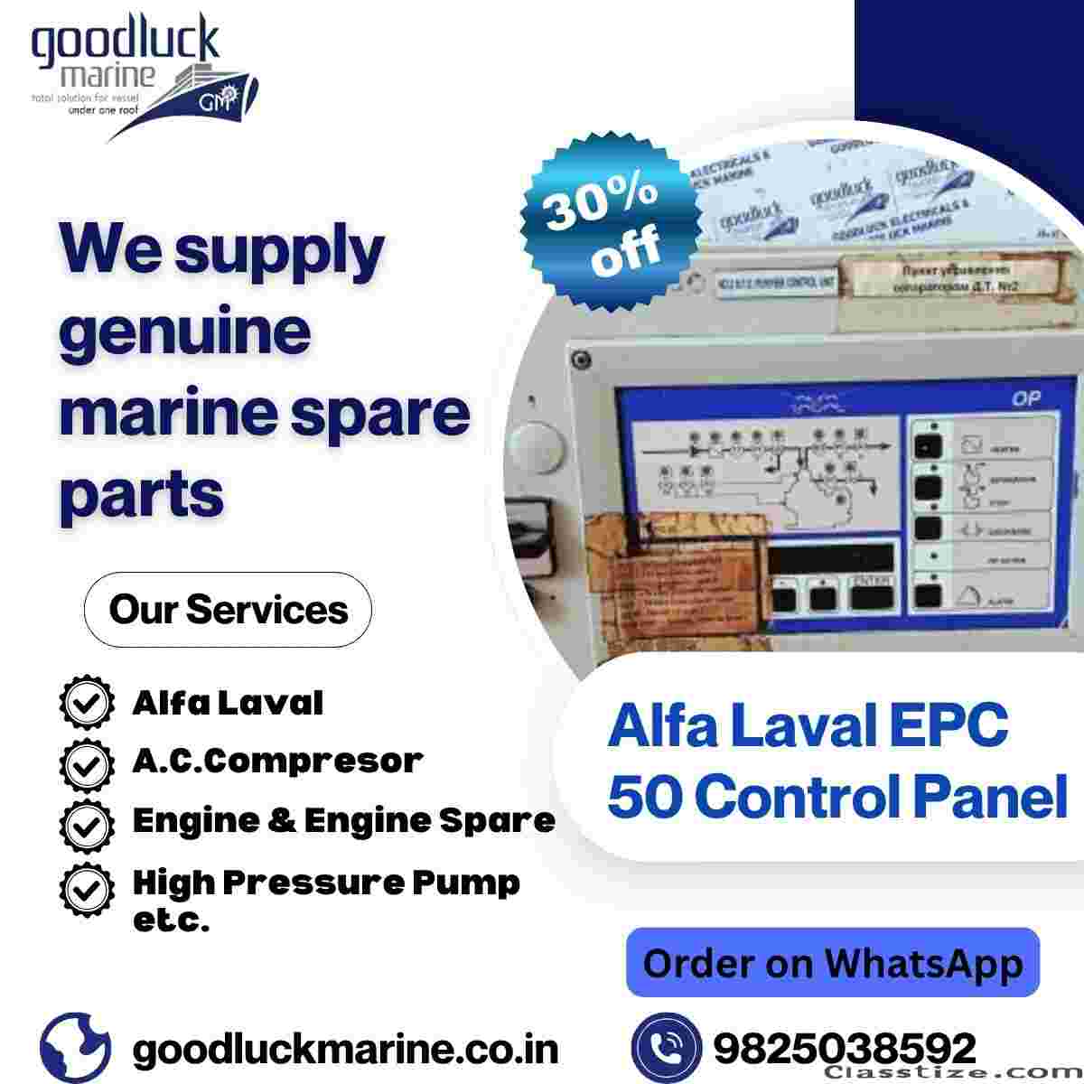 Alfa Laval EPC 50 Control Panel ensures reliable marine automation. We supply genuine marine spare parts, hydraulic pump spare parts, hydraulic cylinder spares, Air Circuit Breaker & Spare, Alfa Laval 360571-04, Alfa Laval 362c74+1b125b20.
