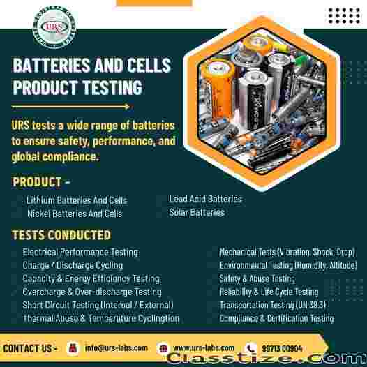 Looking for a reliable Batteries and Cells Testing Laboratory in Mumbai? We offer comprehensive testing services to ensure safety, performance, and compliance with national and international standards. Our advanced facilities and expert team deliver accurate results, helping manufacturers improve product quality, reduce risks, and achieve faster certifications.
