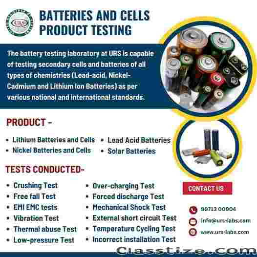 Batteries and Cells Testing Laboratory in Nagpur – URS Labs offers reliable testing services for batteries and cells to ensure safety, performance, and compliance with national and international standards. With advanced equipment and skilled experts, URS Labs delivers accurate and timely results, supporting product quality, durability, and seamless market approval.