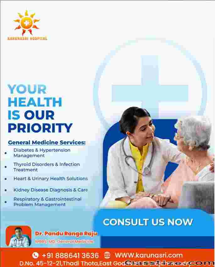 The Best General Hospital in Rajamundry is a trusted healthcare destination delivering comprehensive medical services under one roof. From emergency care, diagnostics, and advanced surgical procedures to maternity care, intensive care, and preventive health services, the hospital is equipped to handle a wide range of health needs. Backed by experienced doctors, trained nursing staff, modern medical equipment, and patient-centric facilities, the hospital is committed to accurate diagnosis, effective treatment, and compassionate care, ensuring the best possible health outcomes for patients and families.Karunasri Hospital is a reliable healthcare institution committed to delivering quality medical services with compassion and care. The hospital provides a wide range of healthcare solutions including outpatient consultations, inpatient care, emergency services, diagnostics, and treatment across multiple specialties. Supported by experienced doctors, skilled nursing staff, and modern medical infrastructure, Karunasri Hospital focuses on accurate diagnosis, effective treatment, and patient comfort. With a strong emphasis on ethical practices and personalized care, the hospital strives to ensure accessible and affordable healthcare for individuals and families.