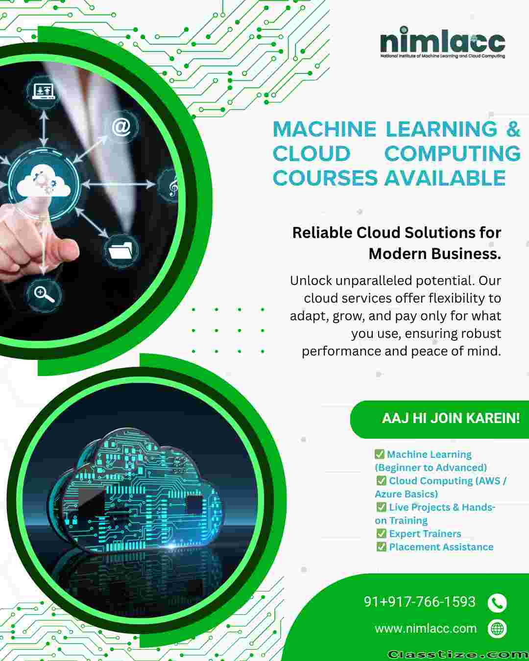 Discover your potential at the National Institute of Machine Learning and Cloud Computing, a premier education centre located in the heart of Nehru Place, New Delhi. We specialise in a wide range of courses designed to empower the next generation of tech professionals. Our expert-led programs provide an immersive learning experience, combining theoretical knowledge with practical, hands-on application. Whether you're a beginner or an experienced professional, our curriculum is crafted to help you master the skills needed to thrive in the dynamic fields of machine learning and cloud computing. Join us and take the first step towards a rewarding career in technology.