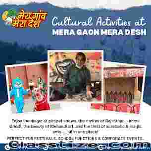 Schools prefer Mera Gaon Mera Desh for its cultural activities like folk dance, music, puppet shows, and interactive performances that encourage learning beyond classrooms. Students can also enjoy rural rides, outdoor sports, indoor games, and adventure activities that promote teamwork and confidence.