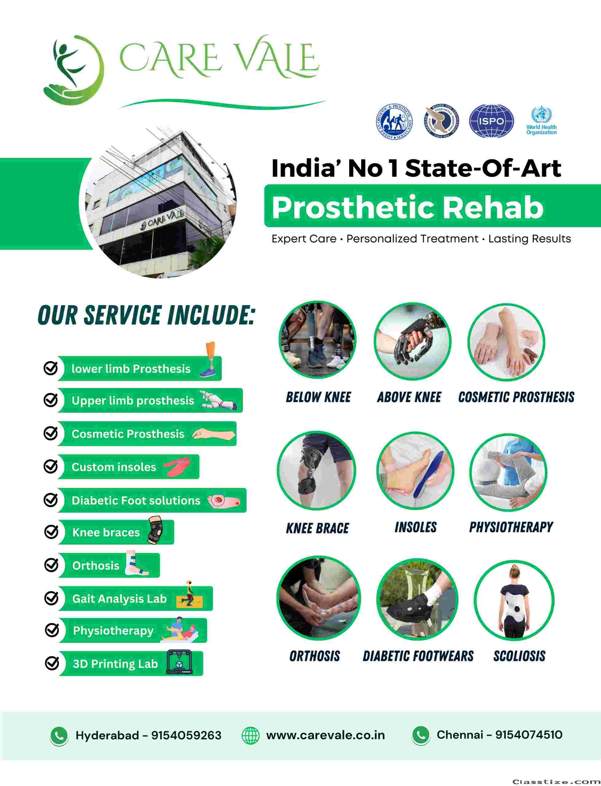 CareVale is a state of the art Prosthetic and Orthotic clinic committed to provide International quality Prostheses, Orthoses& Mobility aid solutions to people with disabilities.