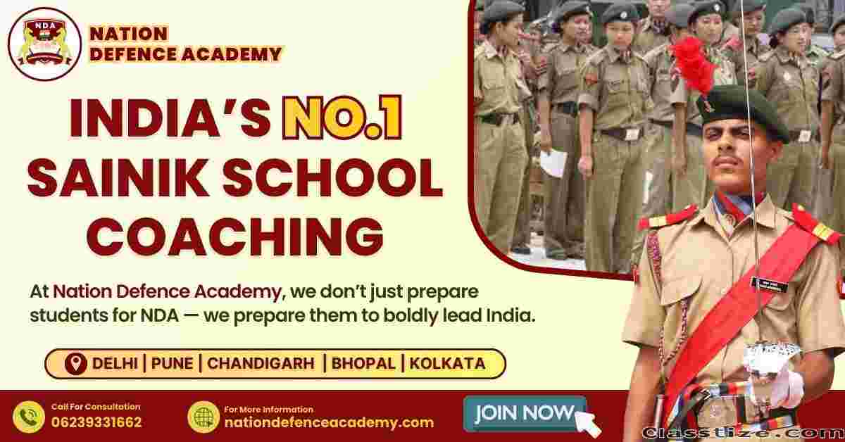 Looking for the Best Sainik School Coaching in India? Nation Defence Academy offers expert guidance and structured training to help young aspirants excel in entrance exams. With experienced faculty, personalized mentorship, and a disciplined learning environment, we focus on building strong fundamentals in academics, physical fitness, and personality development. Our proven teaching methodology ensures every student is prepared to achieve success at Sainik Schools and beyond. Join Nation Defence Academy to experience comprehensive coaching that combines knowledge, strategy, and confidence. Choose the Best Sainik School Coaching in India and secure your path to a bright defence career today!