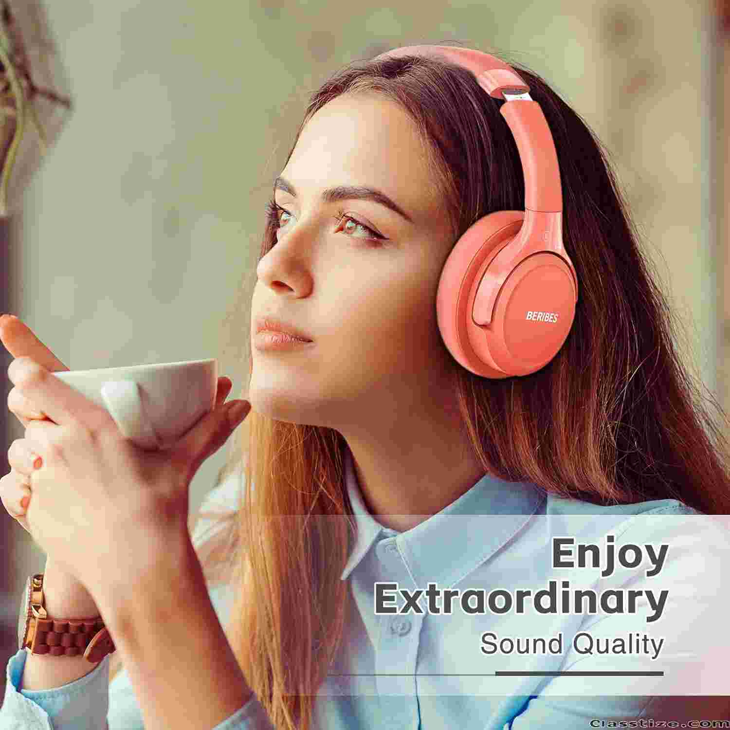 🔥【Optional 6 music modes】Adopted most advanced dual 40mm dynamic sound unit and 6 EQ modes, BERIBES updated headphones wireless bluetooth red were born for audiophiles. Simply switch the headphone between balanced sound, extra powerful bass and mid treble enhancement modes. No matter you prefer rock, Jazz, Rhythm & Blues or classic music, BERIBES Bluetooth Headphones Over the Ear has always been committed to providing our customers with better sound quality as the focal point of our engineering .