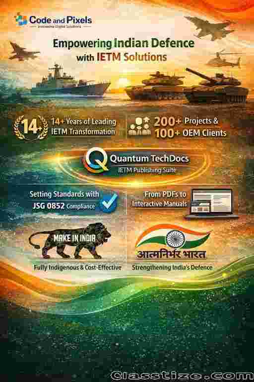 For over 14 years, Code and Pixels has been a trusted technology partner to the Indian Armed Forces and Defence OEMs across India. The company is widely recognized as a pioneer in the development of Interactive Electronic Technical Manuals (IETM) in the country.
