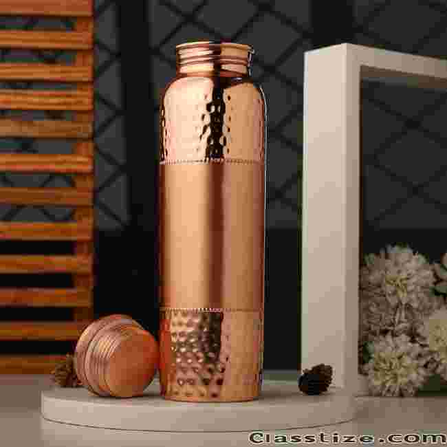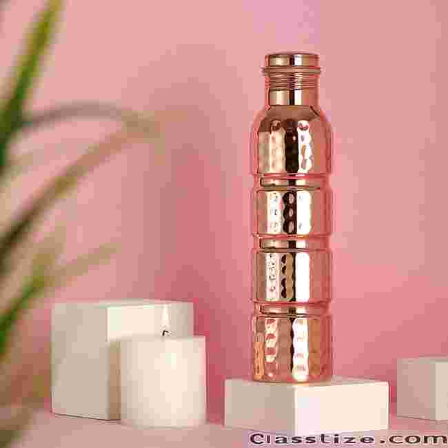 Discover the power of Ayurvedic copper hydration with our 100% pure copper water bottles. Each bottle is handcrafted, leakproof, and designed to offer natural detox benefits. Drinking water stored in copper helps boost immunity, improve digestion, and promote better skin health.