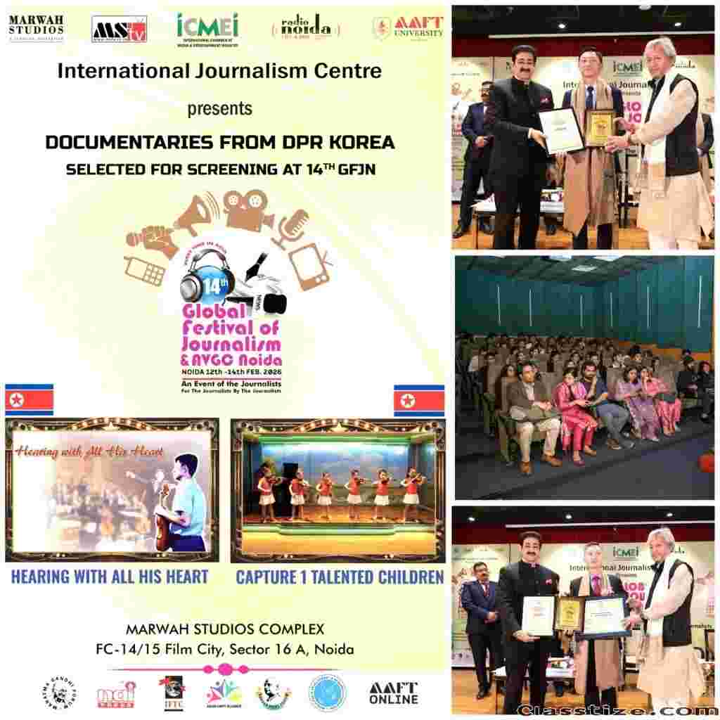 Noida: Two short documentaries from the Democratic People’s Republic of Korea (DPR Korea) were screened and honoured with the prestigious Award of Distinction during the 14th Global Festival of Journalism & AVGC Noida 2026.