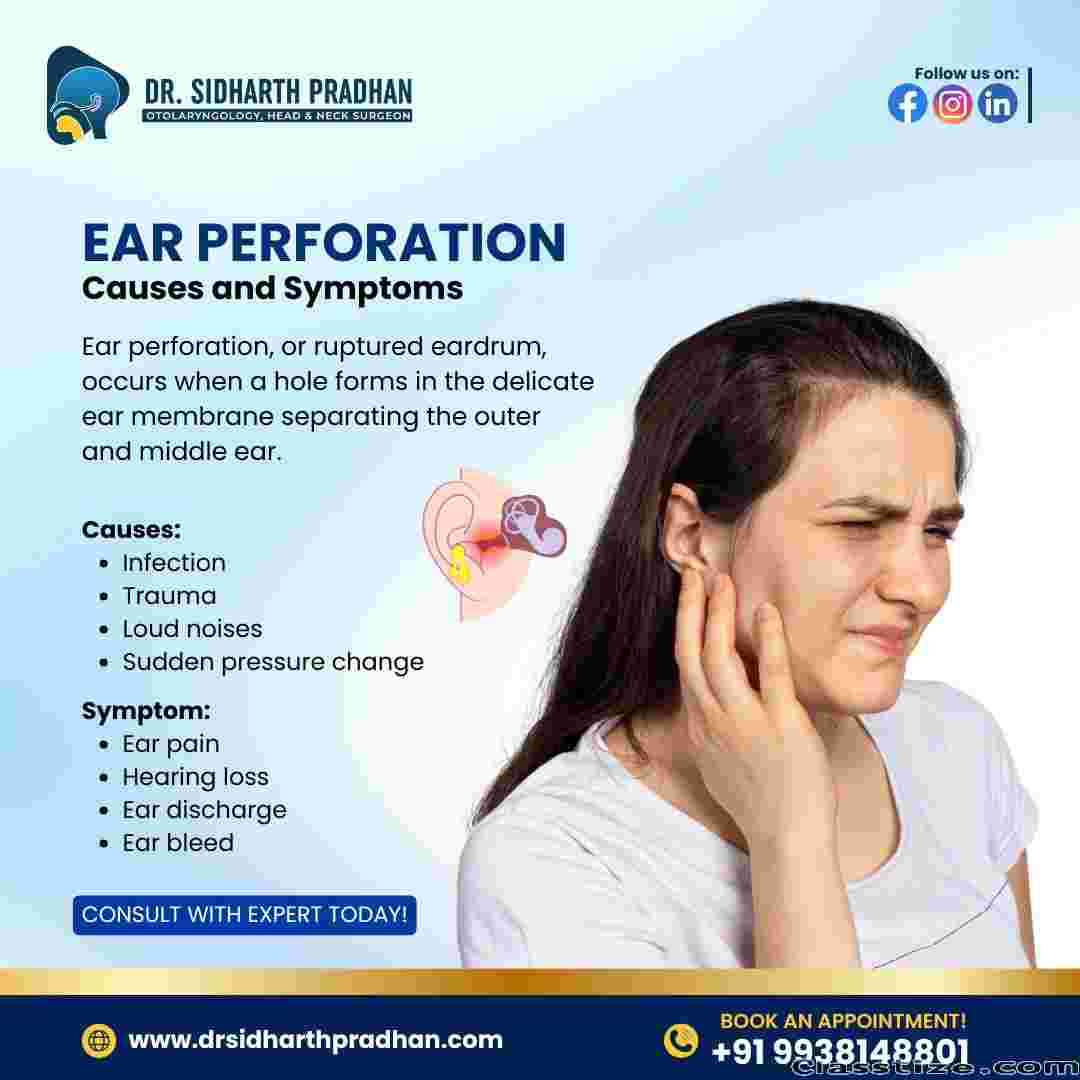 Ear perforation, or a ruptured eardrum, can significantly impact your hearing health. Consult with an ENT expert today to ensure your ear health! Visit www.drsidharthpradhan.com or call +91 9938148801 to book your appointment.