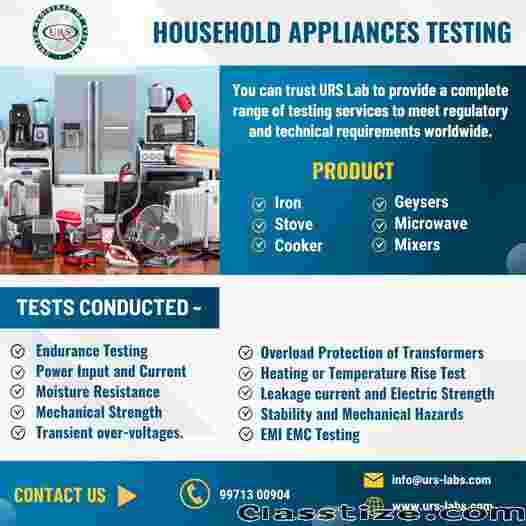 URS Labs is a leading Electrical Household Products Testing Lab in Noida, offering reliable testing and certification services to ensure product safety, performance, and regulatory compliance. At URS Labs, we test appliances as per BIS, IEC, and international standards, helping manufacturers achieve quality assurance and faster market approval in Noida and across India.