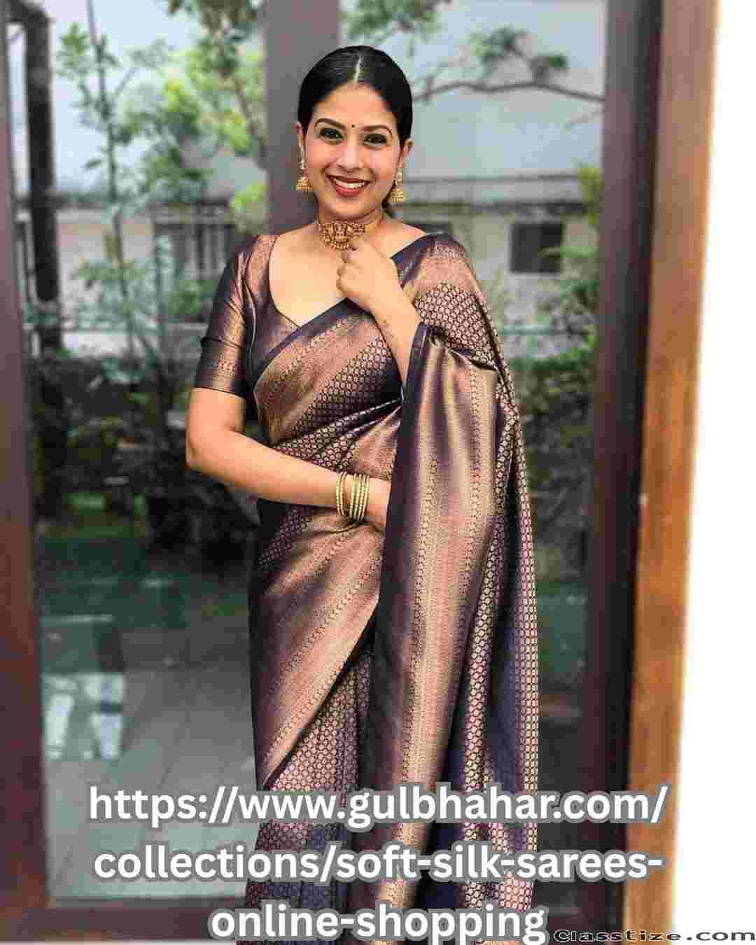 Gulbhahar offers a stunning range of soft silk sarees online shopping to complete your look with sophistication and ease. The finest collection of lightweight, smooth fabrics is available for purchase from Gulbhahar, allowing you to feel comfortable as you wear them every day. You will find a wide range of beautiful colors, intricate patterns and classic designs to enhance your personal style with a touch of class and sophistication.