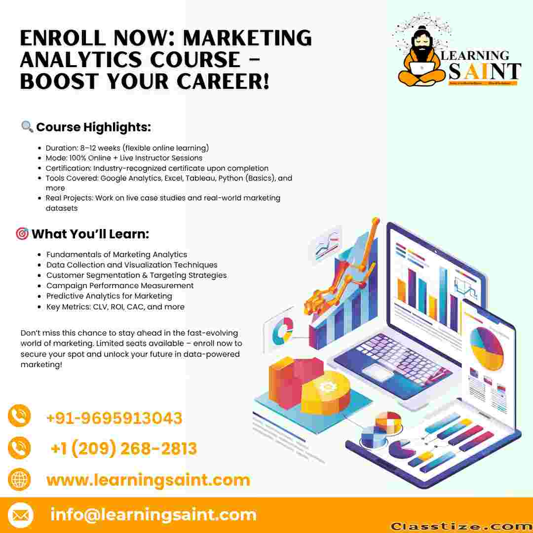 Are you ready to take your career to the next level? Gain in-demand skills and master the art of data-driven marketing with our Marketing Analytics Course – designed for both beginners and working professionals.
