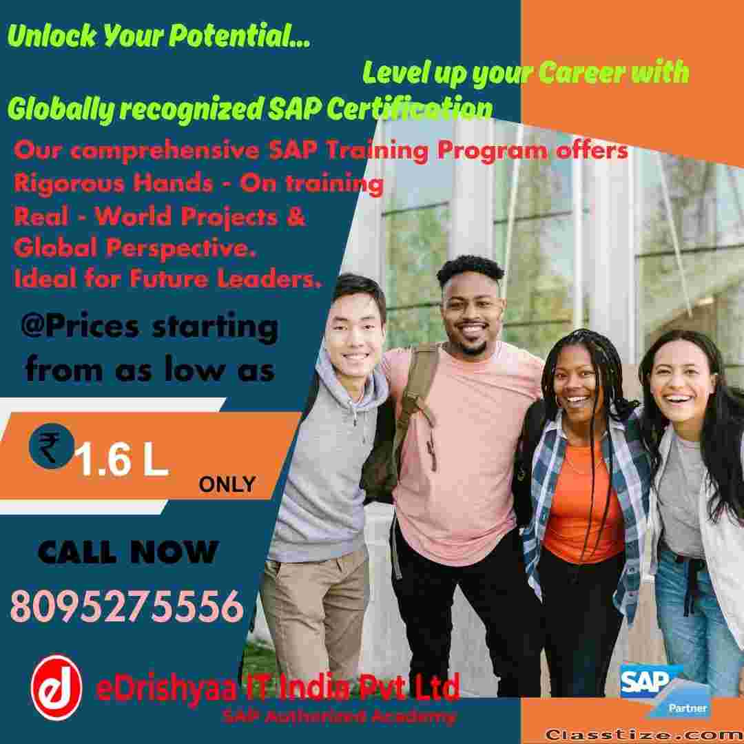 Have you heard about SAP. If not, look into it. You will be surprised to know about a career that will take you to heights in a short period with support of Knowledge and Hardwork. The Right place to explore your career in SAP is eDrishyaa. It is an authorized Academy. You get Quality Education along with Industrial Experts Support and exclusive access to SAP platform. Also, you will be Globally Certified as SAP Consultant and as such you obtain global opportunity to build your career in a better way. Just take a visit, gather more information and take a smart decision of joining eDrishyaa.
