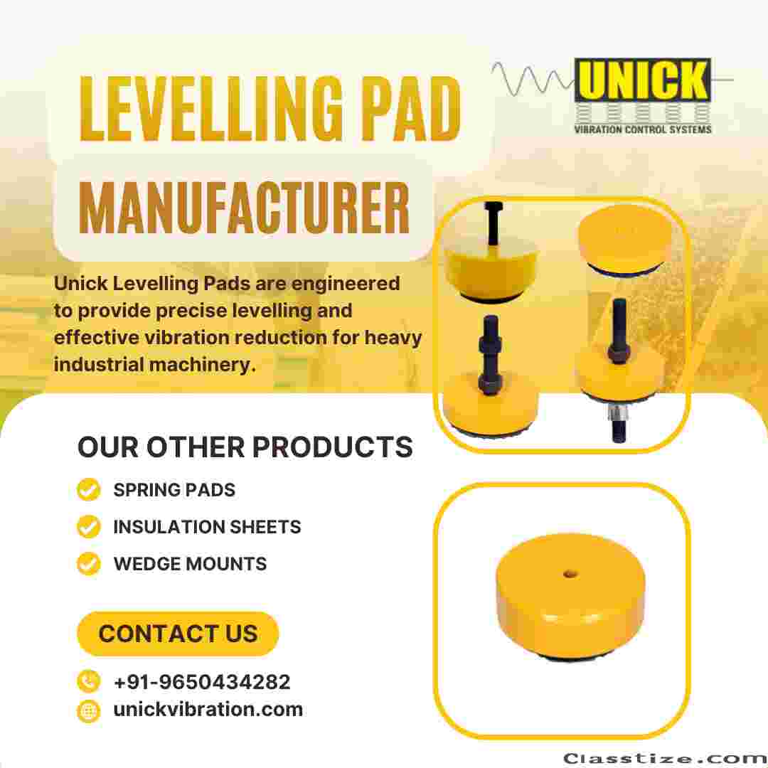 Unick Vibration is a trusted levelling pad manufacturer in India, offering high-quality solutions for accurate machine alignment and vibration control. Our levelling pads are manufactured using durable materials to ensure load stability, reduced noise, and extended machine life. Ideal for CNC machines, generators, and heavy industrial equipment, Unick levelling pads deliver reliable performance. For expert guidance, custom requirements, and competitive pricing, call 9650434282 today.