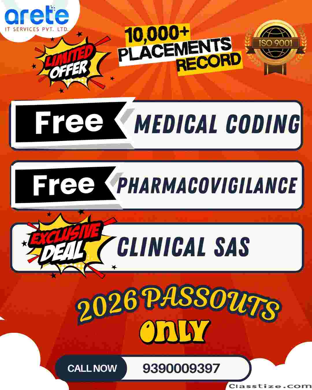 #MedicalCoding #Pharmacovigilance #ClinicalSAS #FreeCourses #HealthcareCareers #2026Passouts #JobPlacement #CareerGrowth #ITServices #Arete #FreshersJobs #ClinicalResearch #LearnAndEarn #LimitedOffer #SkillDevelopment
