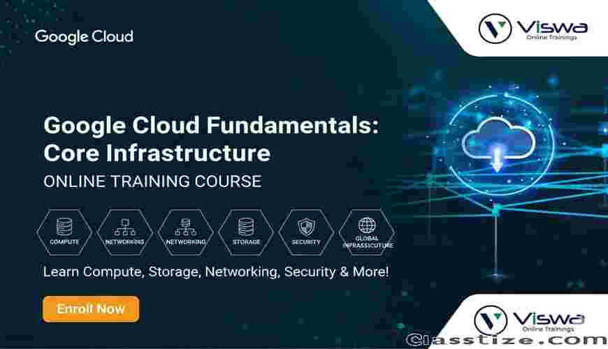 The Google Cloud Fundamentals Online Course by Viswa Online Trainings offers a foundational curriculum covering key cloud services on Google Cloud Platform (GCP) including Compute, Storage, Networking, Big Data & Analytics, Security, and deployment considerations.