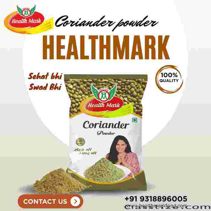 Bring authentic taste and freshness to your kitchen with Health Mark Coriander Powder. Made from premium coriander seeds, it adds natural aroma, earthy flavor, and digestive benefits to every dish. Processed hygienically and packed to preserve freshness, Health Mark ensures purity, quality, and trust in every packet. Perfect for curries, gravies, chutneys, and spice blends, it is a must-have in every Indian kitchen. Buy online at healthmarkfood.com or call +91 9318896005 / +91 93188960017 for bulk and retail orders. Taste the difference with Health Mark – where flavor meets purity.
