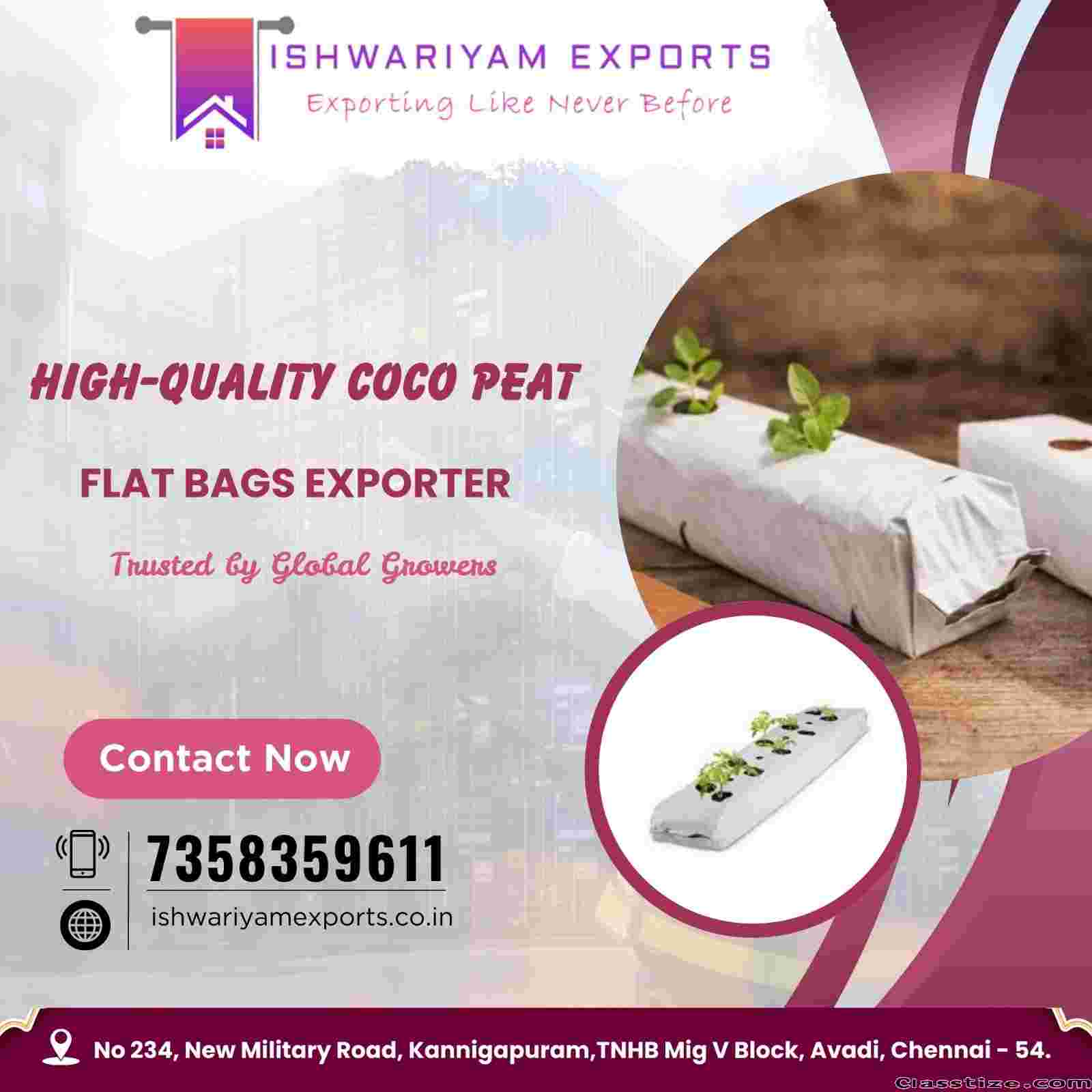 Ishwariyam Exports is a popular Coco Peat Flat Growbags exporter in Tamilnadu , supplying premium flat growbags made from washed coco peat. These high-quality growbags provide uniform hydration and consistent performance for modern cultivation systems. When you call, don't forget to mention that you found this ad on CLASSTIZE.COM