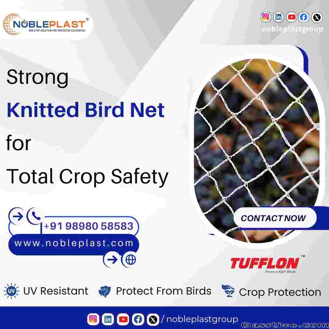Looking for reliable crop protection nets in India? Nobleplast offers high-strength Mono X Mono shade nets, thermal nets for climate control, and bird protection nets for total farm safety. Ideal for polyhouses, orchards, vineyards, and commercial agriculture. Long life, UV stabilized, and built for maximum crop yield. When you call, don't forget to mention that you found this ad on CLASSTIZE.COM