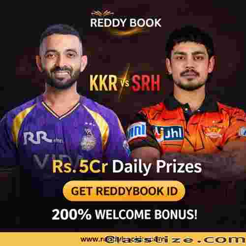 KKR vs SRH action is here. Win big with Rs.5Cr daily prizes. Get your Reddybook ID now and enjoy a 200% welcome bonus. Join today and start winning real rewards. Visit website: https://reddybookks.com/