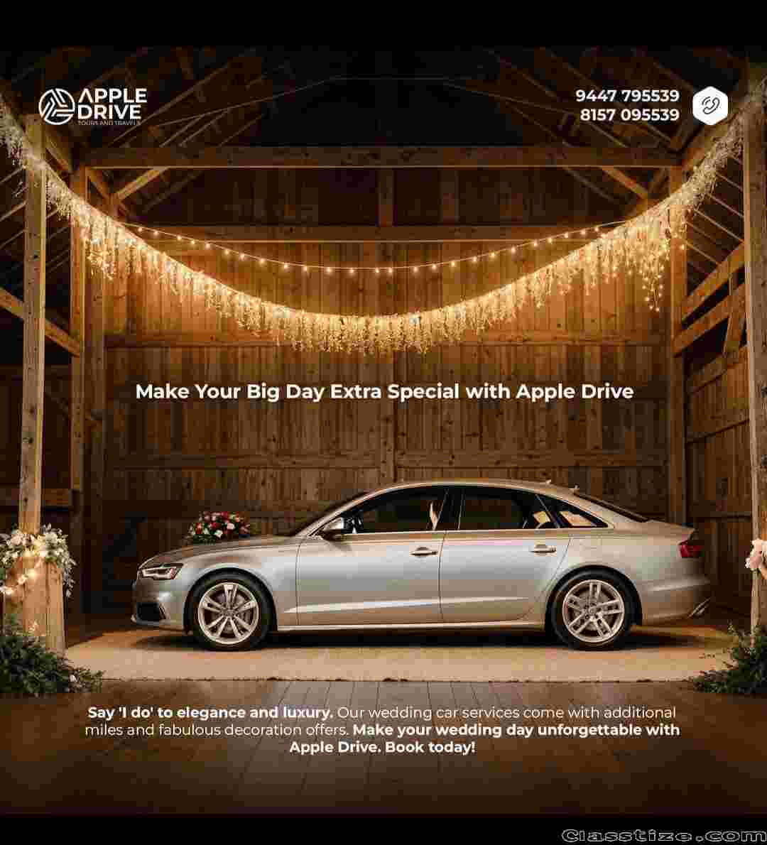 Elevate your special day with our exquisite range of Marriage cars – a perfect blend of elegance and sophistication. Apple Drive Trivandrum, where every drive is a celebration!