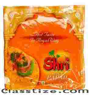 Shri Edibles Private Limited are proud to be a premium Masala Papad Dealer, giving our customers delicious papads. To get instant satisfaction, just roast or fry the masala papad and serve it immediately. Masala papad is brownish in colour and salty in flavour. You could add it as a snack or start your meal with it. We mix different spices to give your food dishes a bold and tangy taste. We work hard to keep all papads clean and hygienic. We rely on skilled labour to maintain a high level of quality at every point. At Shri Edibles Private Limited, food processing is always carried out in a hygienic and controlled way.