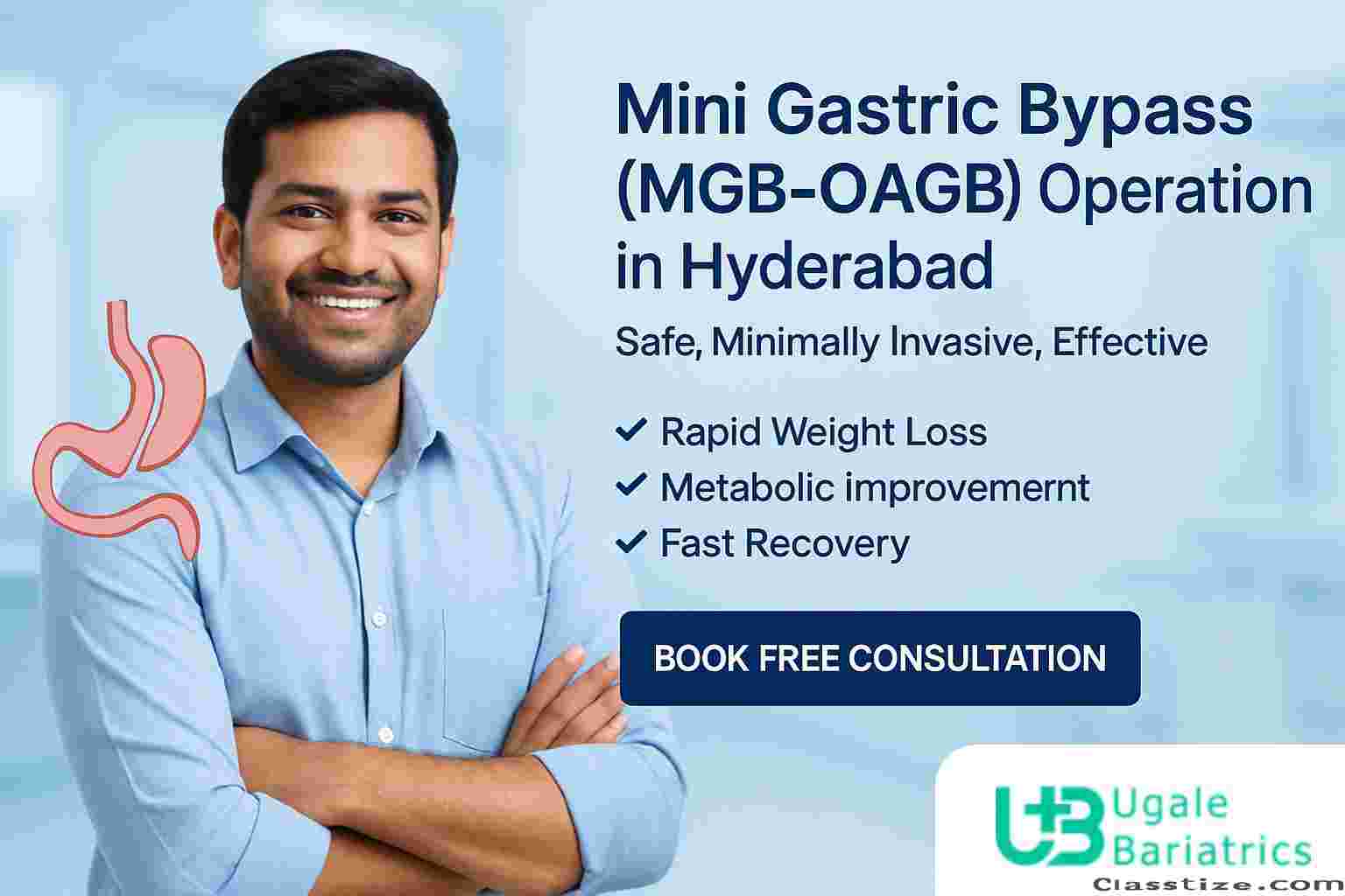 Transform your health with a safe, effective Mini Gastric Bypass (One Anastomosis Gastric Bypass) at Hyderabad’s trusted weight loss center. Achieve 60–70% excess weight loss, rapid recovery, and long-term diabetes and hypertension improvement with Dr. Surendra Ugale and his expert team. State-of-the-art facility, personalized care, and affordable EMI options. Book your free consultation today!