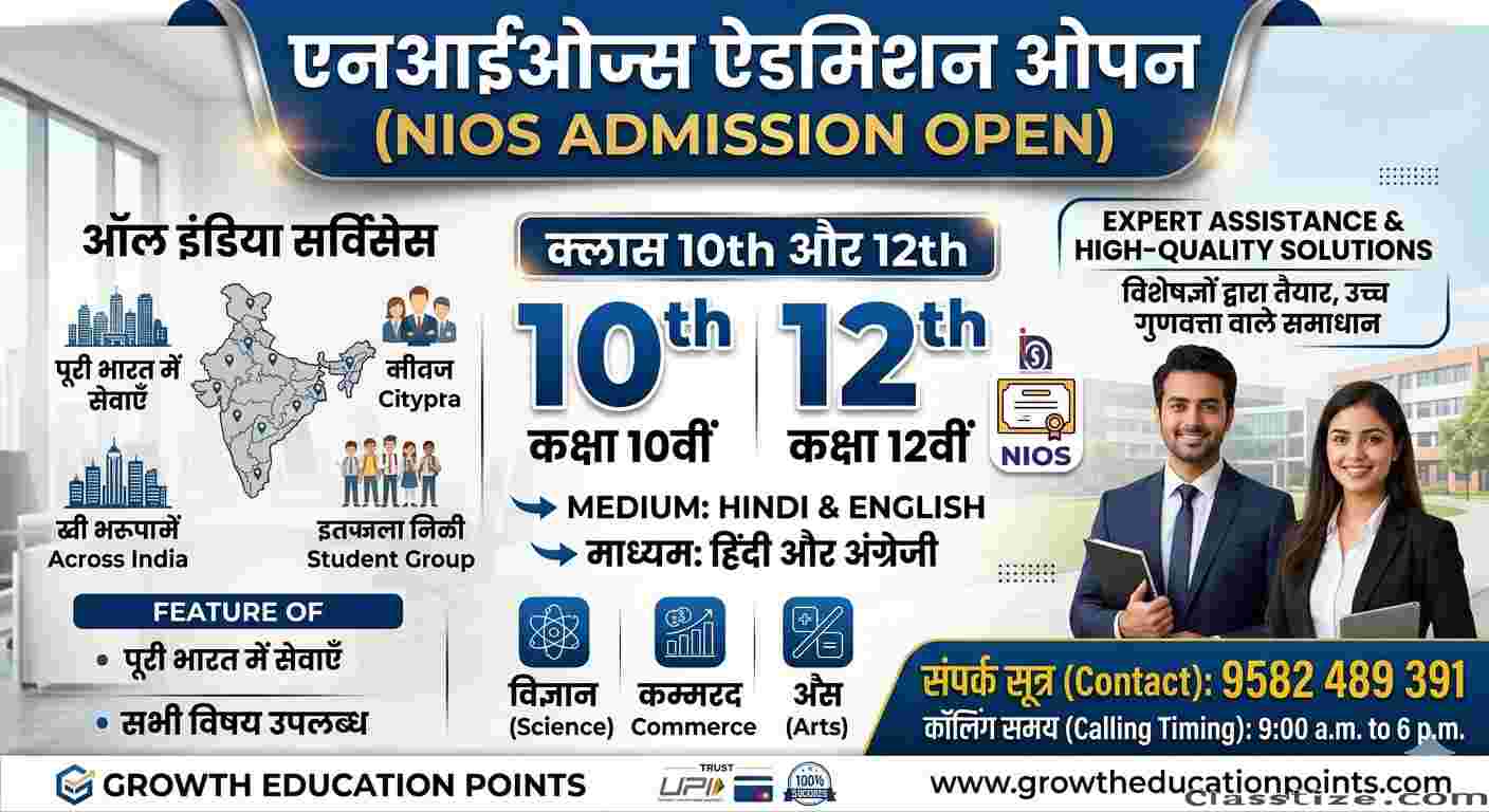 We Provide NIOS solved assignments (Tutor Marked Assignments or TMAs) for the 2025-26 session, you can download official question booklets from the NIOS Student Portal for free to solve them yourself, or purchase expert-prepared solutions from educational providers. If you are looking for solved assignment filePDF or handwritten scan copy of NIOS solved assignment is subject to charges.The best NIOS assignment solved provider available online is Growth Education Points. Contact Us : 9582489391, 9716138286 or WhatsApp.