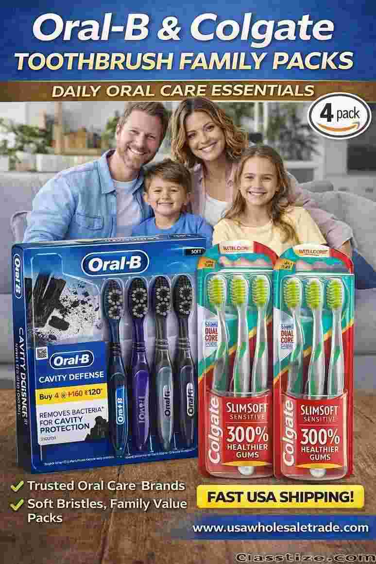 Upgrade your daily oral care routine with trusted brands like Oral-B and Colgate. These toothbrush family packs are designed for effective cleaning, comfort, and long-lasting use.