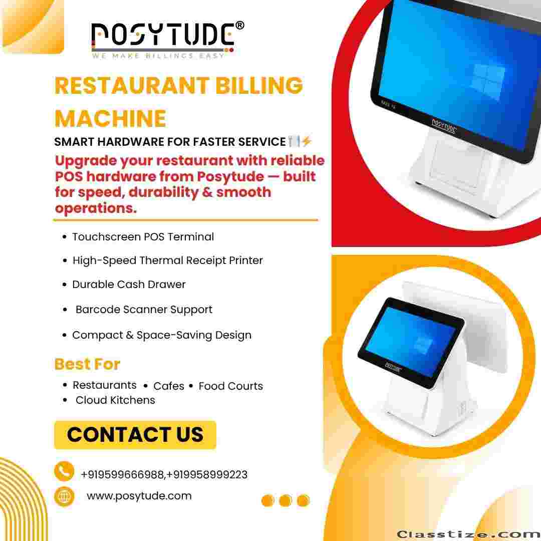 Enhance your business operations with a reliable Pos billing Machine from Posytude. Designed for both retail stores and restaurant businesses, this advanced billing solution helps streamline daily operations with speed and accuracy. It supports fast billing, real-time inventory management, and multiple payment options including cash, card, and digital payments. With integrated Easy billing software, it becomes simple for staff to manage sales, track stock, and generate reports without any hassle. This system reduces billing errors, saves time, and improves overall efficiency. Ideal for supermarkets, cafes, and retail shops, it ensures smooth and professional transactions every day while enhancing customer satisfaction and business growth.