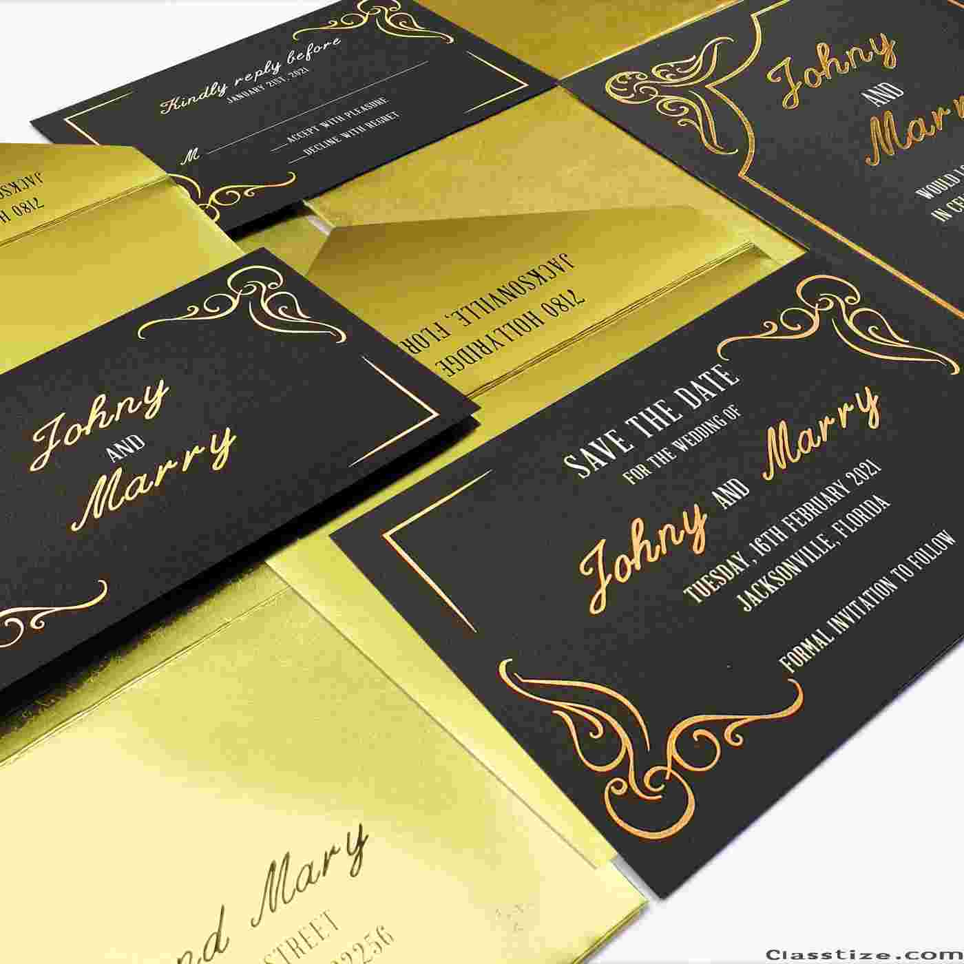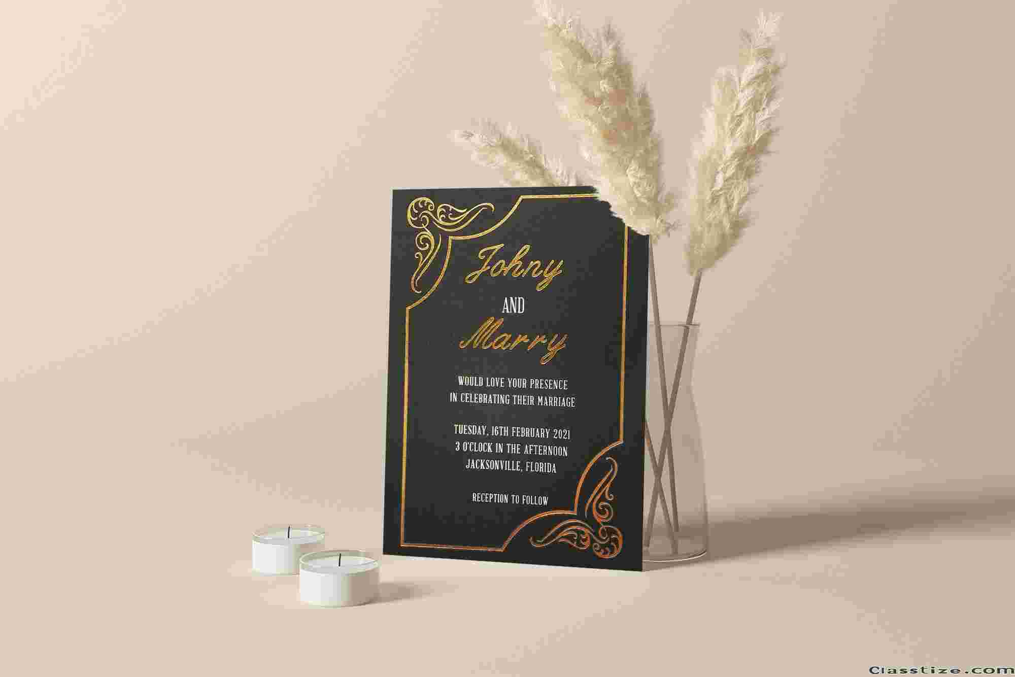 Add a luxurious touch to your special event with our stunning foil stamped invitations. Explore elegant gold foil pressed wedding invitations, foil embossed designs, and hot foil stamping options. From letterpress foil stamped wedding invitations to hot stamping wedding cards, find premium invitation foil printing crafted to impress.