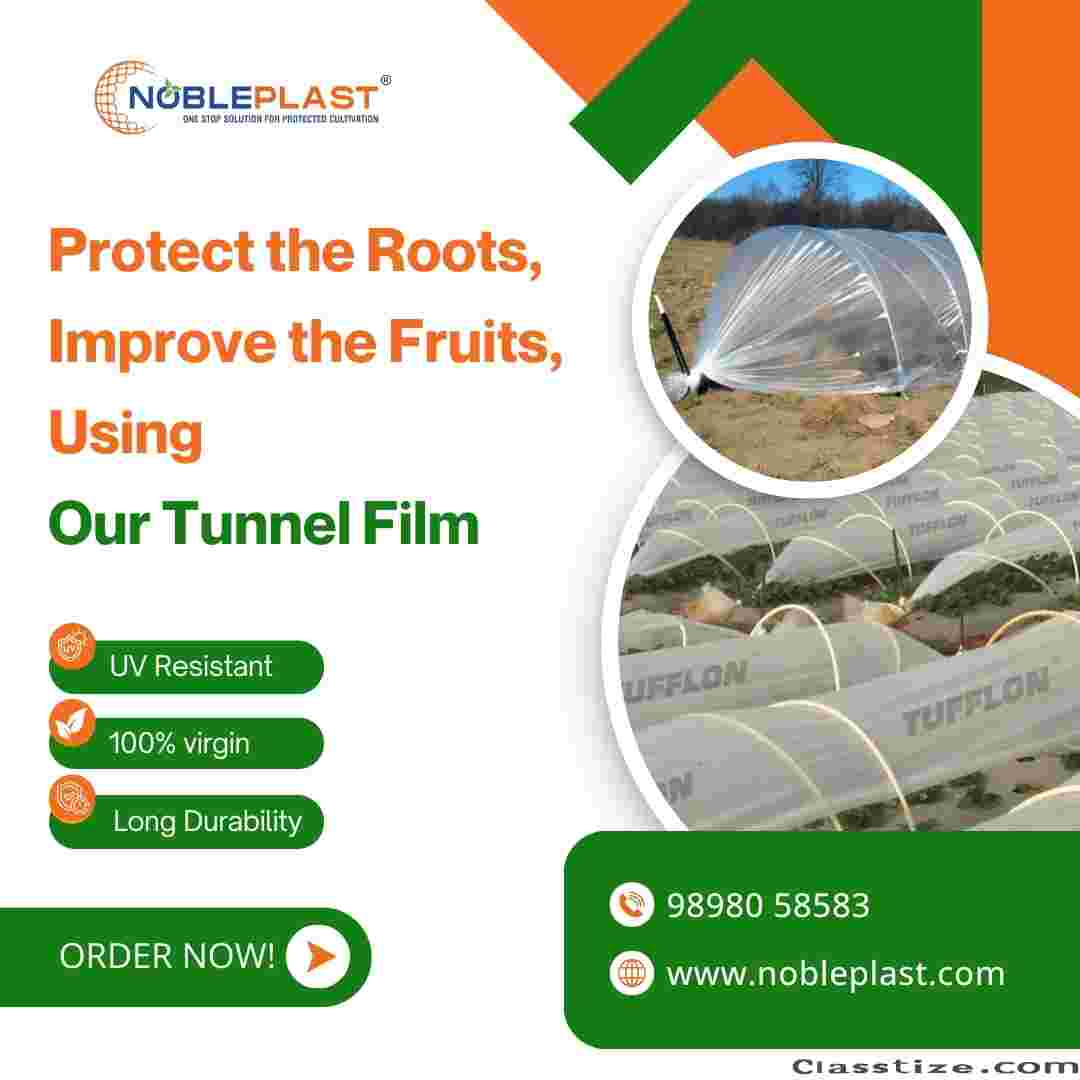 Boost crop protection and fruit quality with NoblePlast Tunnel Film, specially designed for protected cultivation. This high-performance tunnel film safeguards plant roots, maintains optimal soil temperature, and enhances crop growth even in challenging weather conditions. Made from 100% virgin raw material, it offers excellent UV resistance and long durability. Ideal for vegetables, fruits, nurseries, and seasonal crops, NoblePlast Tunnel Film helps farmers achieve healthier plants, better yields, and improved fruit quality.