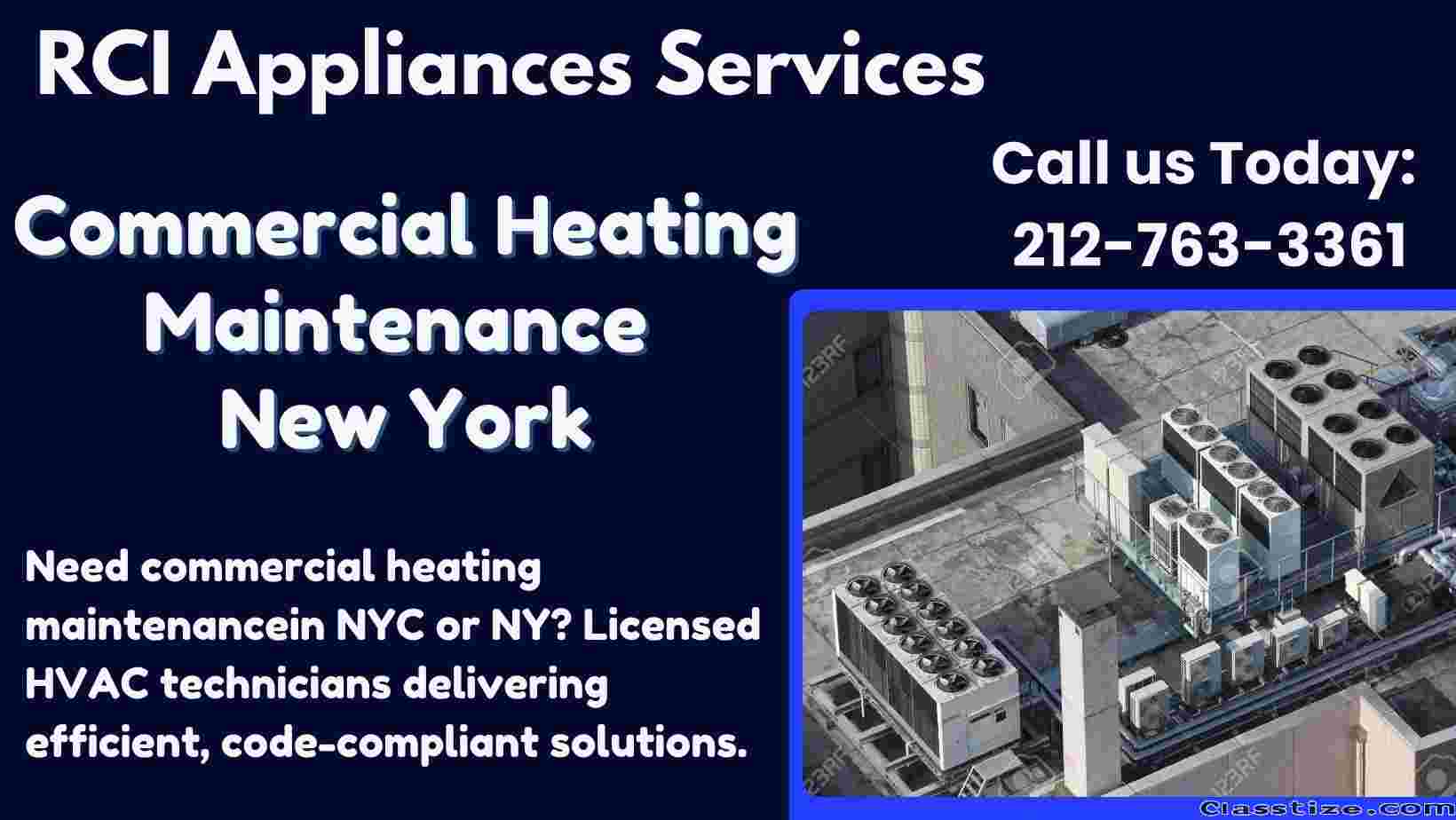 RCI Appliances Services delivers top-quality residential and commercial HVAC solutions with a strong focus on heating performance and reliability. From furnace repairs and boiler diagnostics to complete heating system installations, we ensure your property stays warm during New York’s toughest winters. Our technicians are fully trained to also handle AC repairs, ductwork, indoor air-quality systems, and preventative maintenance. We combine modern technology with exceptional.