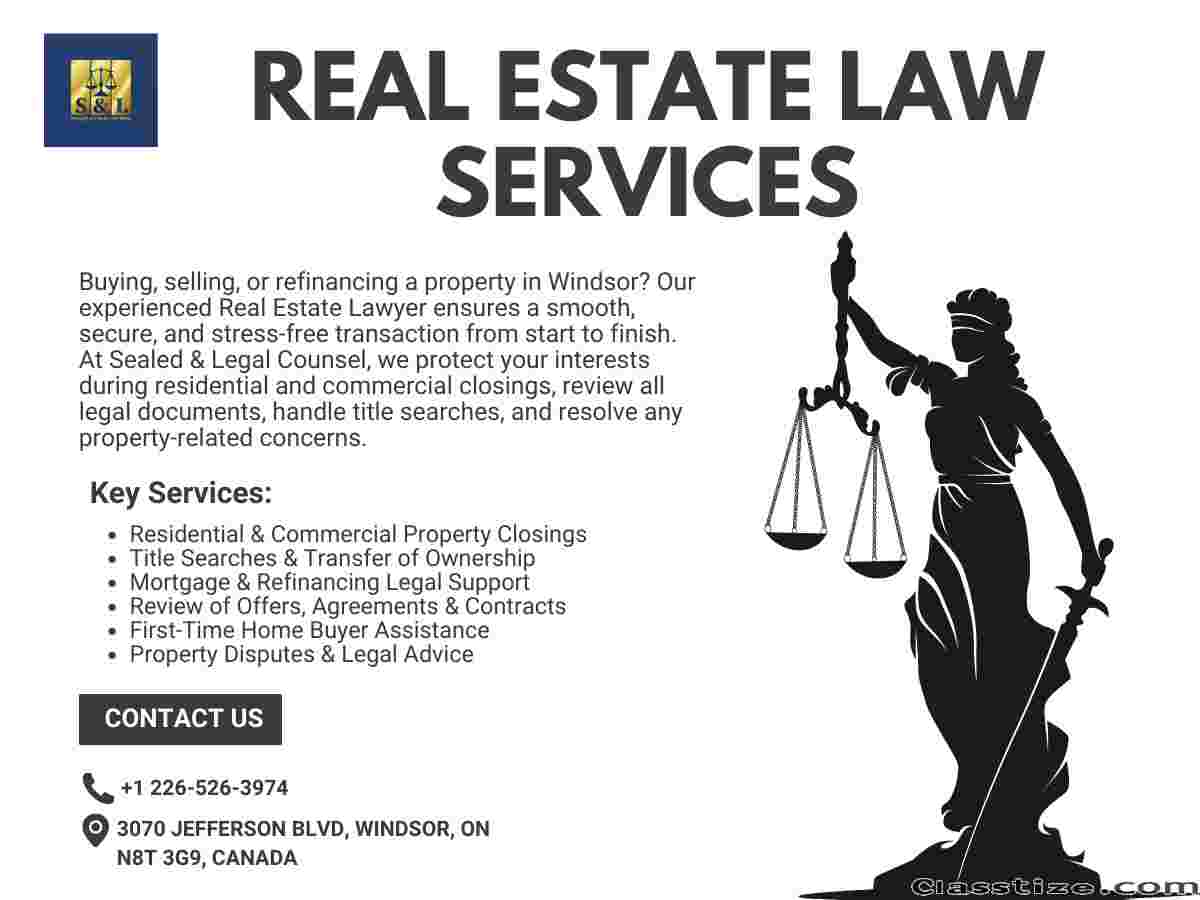 Sealed & Legal Counsel provides trusted Real Estate Law services in Windsor, offering smooth property transactions, reliable guidance, and strong legal protection for homebuyers, sellers, and investors.