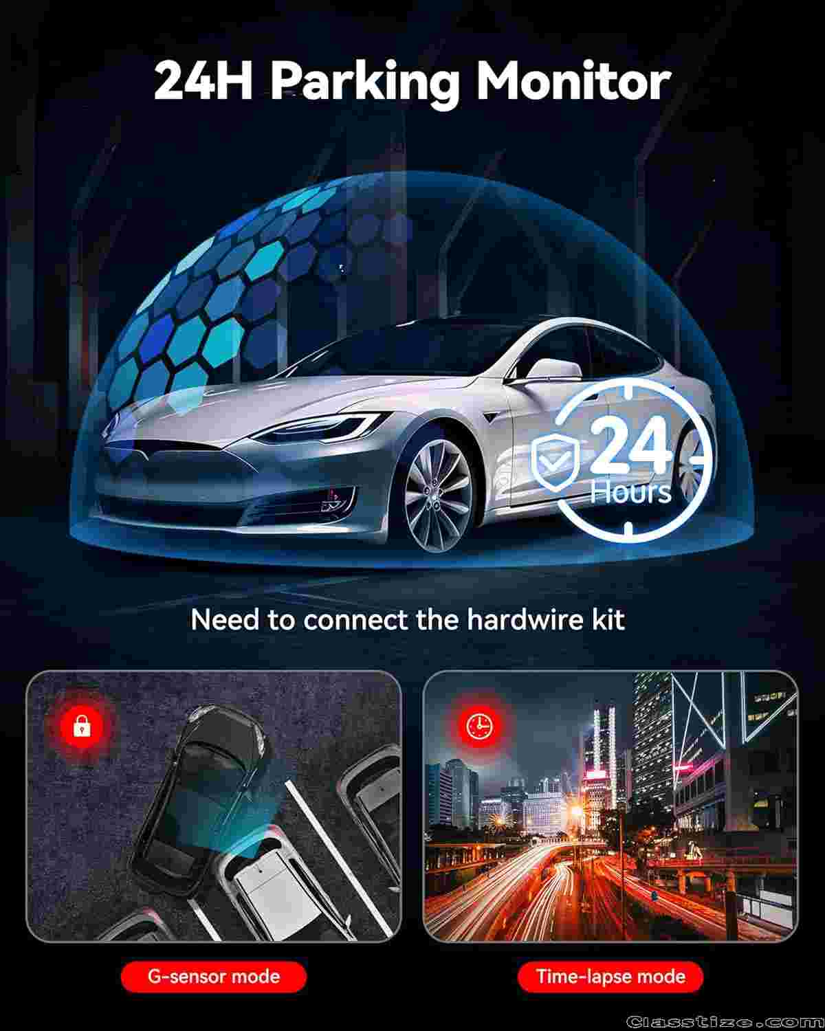RELIABLE FEATURES FOR ACCIDENT RECORDING- Even when the memory card is full the REDTIGER F7NP dash cam will continue recording with its Loop Recording feature. As soon as the G-Sensor detects a sudden collision, it locks and saves the collision video. It also has a 24 hours parking monitor available on the dash cam to record continuously for 24 hours with time lapse function at parking mode. Please note that a hardware kit is needed.