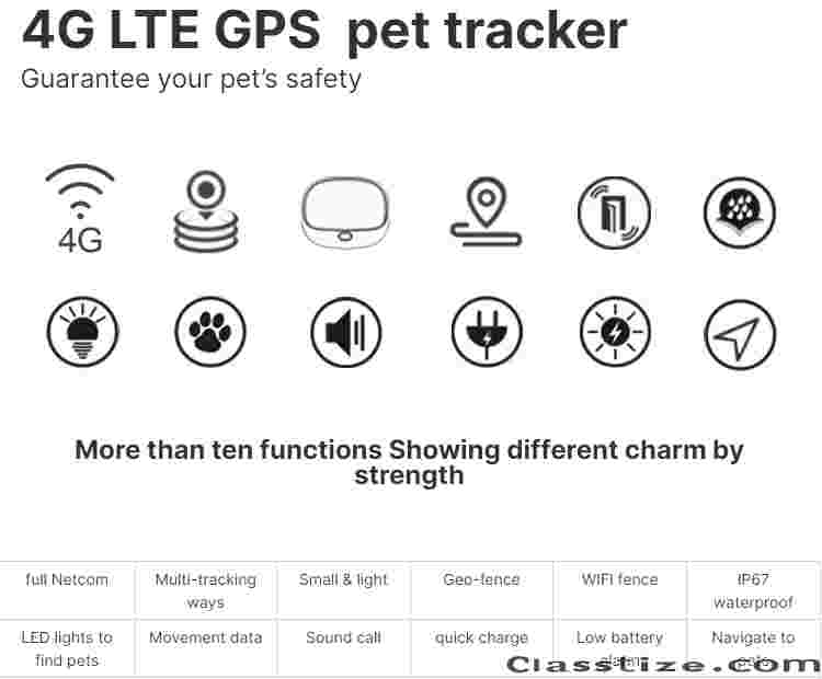 Built in 500mAh battery, with an outdoor error of 5-15m, WiFi/4G signal, remote control through APP, IP67 waterproof, suitable for pet use.Features: 24-hour command, APP remote control, GPS positioning, power-saving mode, real-time tracking, geofencing alarm, and location recording.