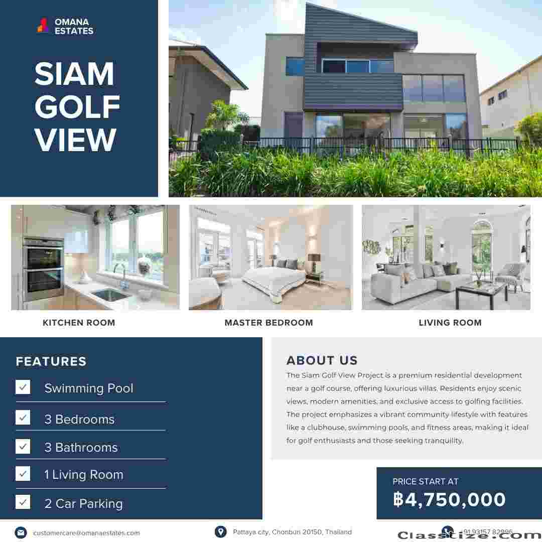 A stunning collection of luxurious villas and townhouses next to the four prestigious SIAM golf courses. Siam Golf View Pattaya Thailand the famous Brazilian architecture inspires these contemporary modern villas. Surrounded by lush fairways of modern architecture, each home is tastefully designed with elegant interiors and spacious rooms. Here, you come home to an exceptional setting where a world of comfort awaits. Fantastic strategic location at the epicenter of East Pattaya, close to Mabprachan Lake's running and cycling track, restaurants and bars & Siam Country Club, and leading international schools. The project offers 100 to 1000 Sqmt luxury villas.