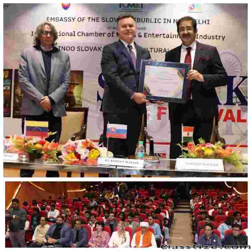 New Delhi, India: During the ongoing Cultural Days of Slovakia in India, Dr. Sandeep Marwah, President of Marwah Studios and Chair of the Indo–Slovakia Film and Cultural Forum, was formally honoured by H.E. Robert Maxian, Ambassador of Slovakia to India, for his remarkable seven years of committed service to strengthening relations between India and the Republic of Slovakia.
