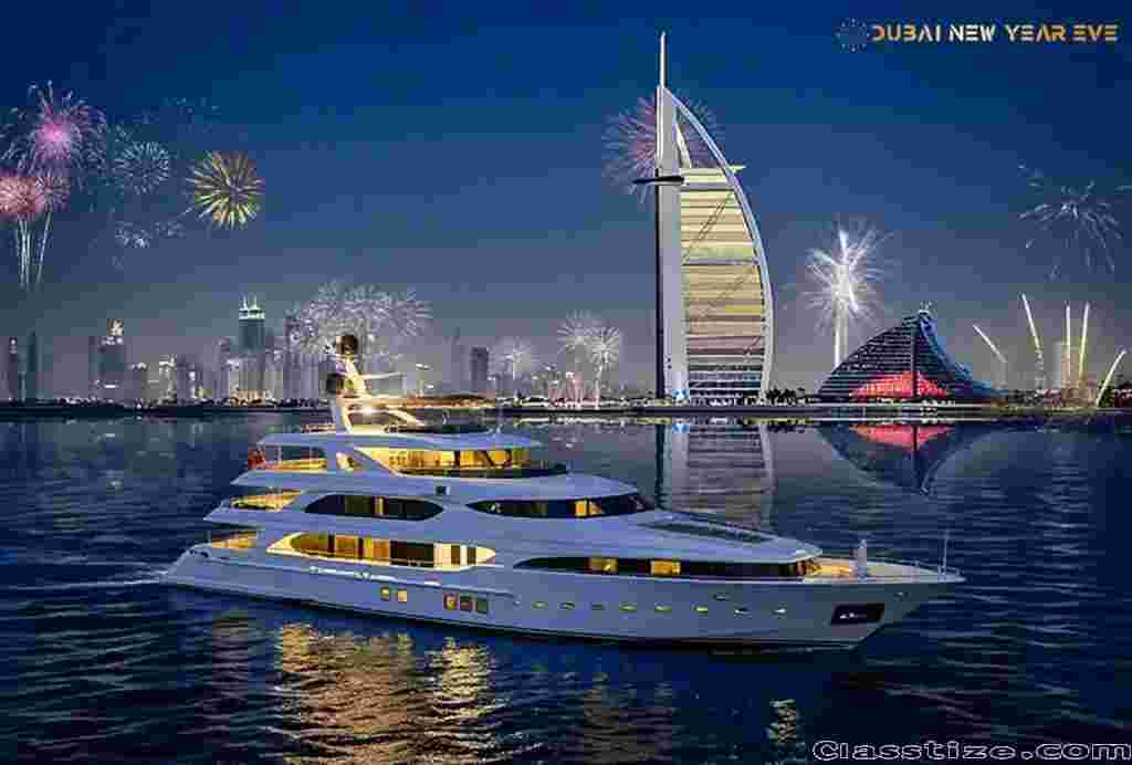 Step aboard a shared yacht for New Year’s Eve with Dubai New Year Eve, and experience a social, fun, and scenic celebration.