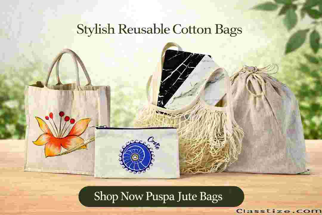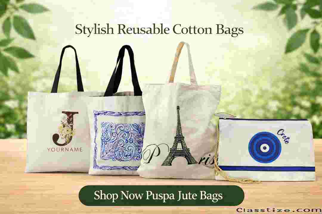 For premium quality and stylish designs, Puspa Jute Bags offers a wide collection of natural cotton bags that combine durability with elegance, making them perfect for everyday use.