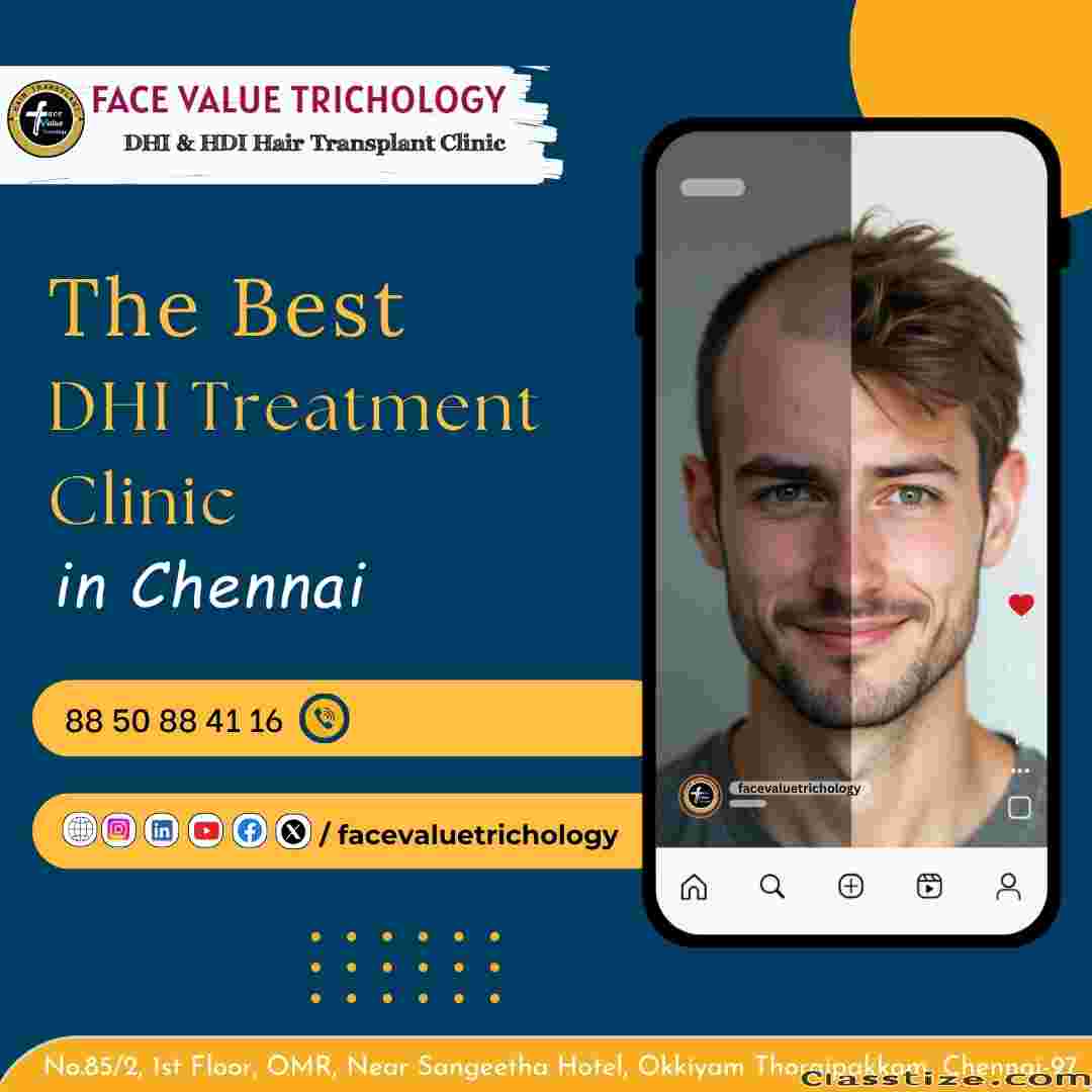 Face Value Trichology Clinic specializes in Direct Hair Implantation (DHI), High Density Implantation (HDI) offering advanced hair restoration solutions with precision and natural-looking results. The clinic combines state-of-the-art technology with personalized care to ensure minimal downtime and maximum satisfaction. Expert trichologists provide tailored treatments for hair loss, ensuring the highest quality standards in a professional environment