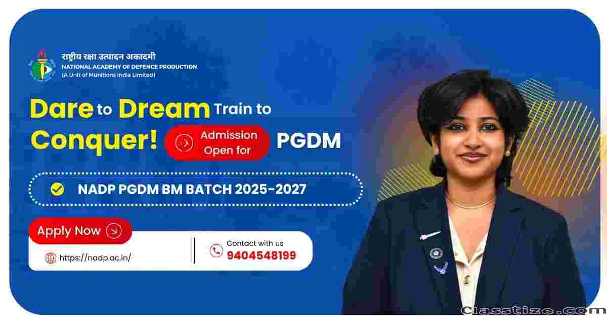 The National Academy of Defence Production (NADP), Nagpur, stands out as one of the top PGDM colleges in Nagpur, offering world-class management education with a strong foundation in leadership, innovation, and strategic thinking. NADP’s AICTE-approved PGDM programs are designed to meet industry and defence sector needs, preparing students for impactful careers. With expert faculty, experiential learning, industry collaborations, and modern infrastructure, NADP provides an ideal environment for holistic growth. Students graduate with the skills, confidence, and vision to lead in both corporate and public sectors.