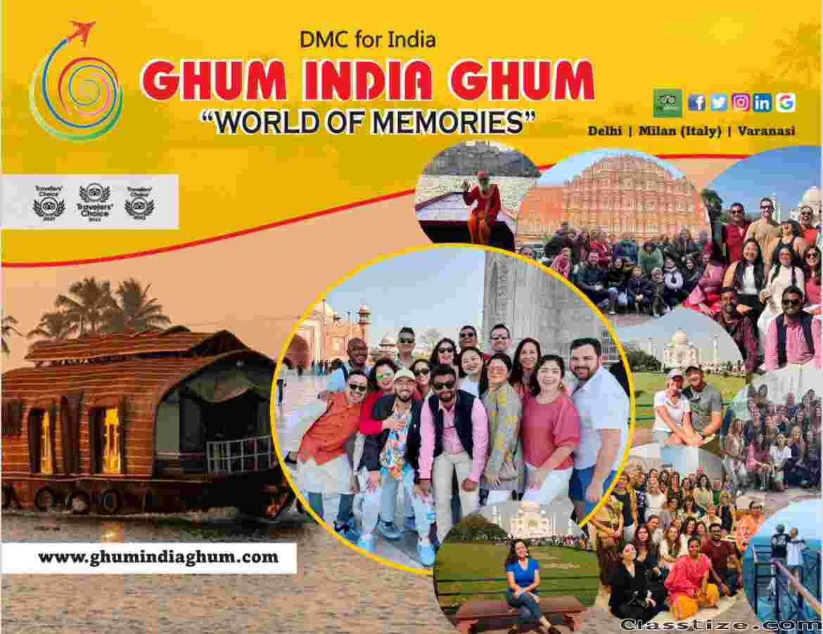 Ghum India Ghum is a travel company based in India that offers customized tour packages for domestic and international destinations. The company provides a wide range of travel services, including flight booking, hotel reservation, transportation, sightseeing tours, adventure activities. Their tours are tailored to meet the needs and preferences of different travelers, whether they are solo travelers, honeymooners, families, or groups.