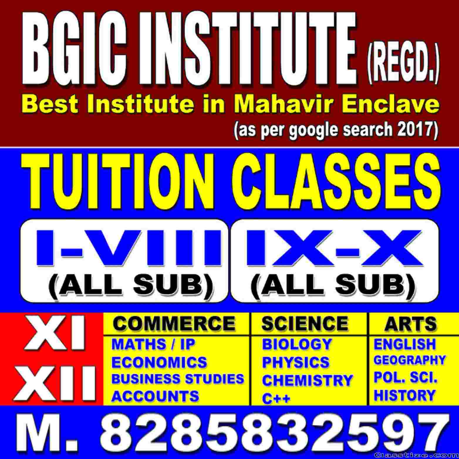 Tuition / coaching classes for class 10th Maths/ Science / English / SST /at BGIC INSTITUTE in DWARKA , MAHAVIR ENCLAVE , JANAKPURI ,PALAM, DELHI, West Delhi